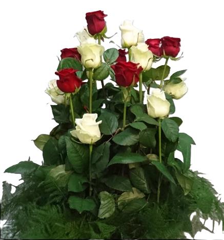 Coupe de roses piquées rouge et blanc (environ 20 roses)