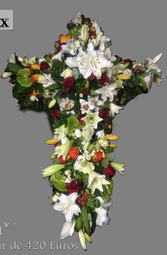 Croix tons rouge blanc et une touche de jaune 120 cm