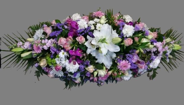 Dessus de cercueil 120 cm tons rose parme et blanc