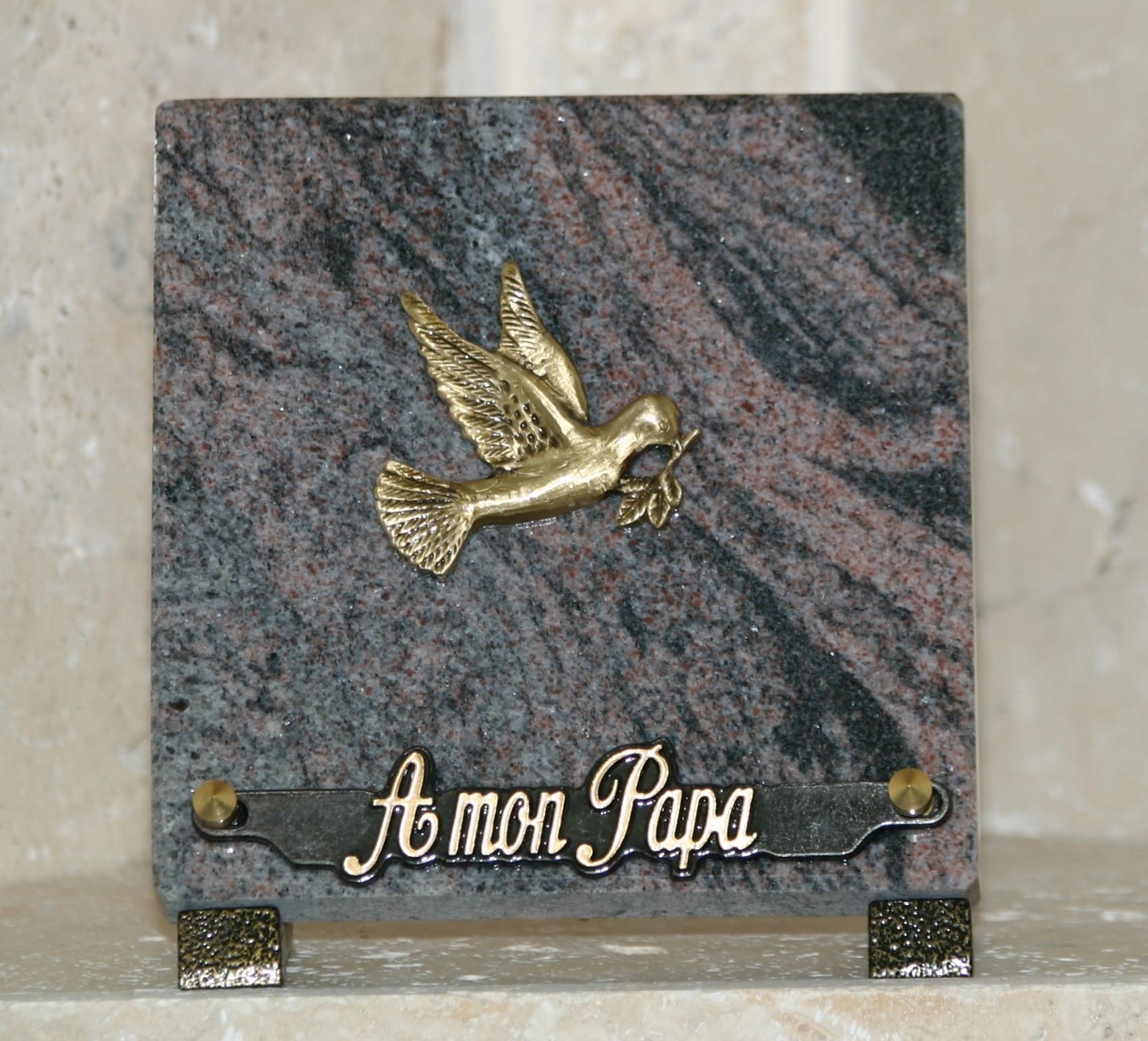 Plaque granit rose carré bronze oiseau