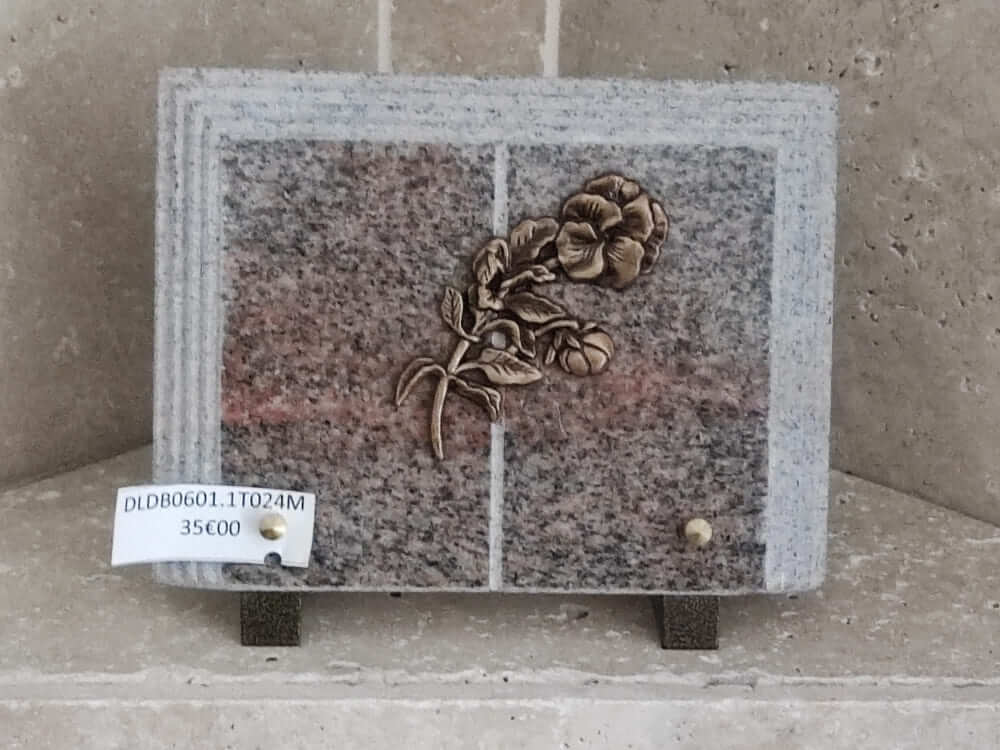 plaque granit rose livre bronze rose